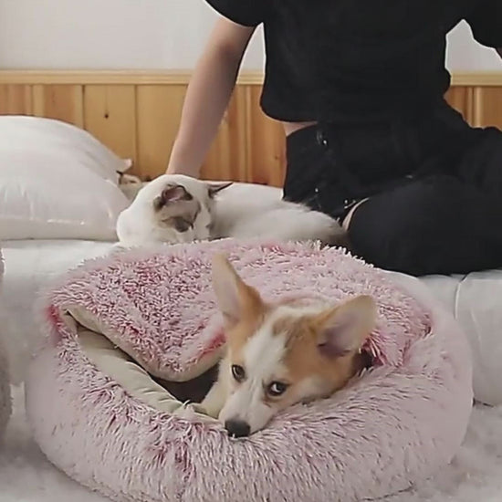 2 In 1 Dog And Cat Bed Pet Winter Bed Round Plush Warm Bed House Soft Long Plush Pets Bed Pet Products